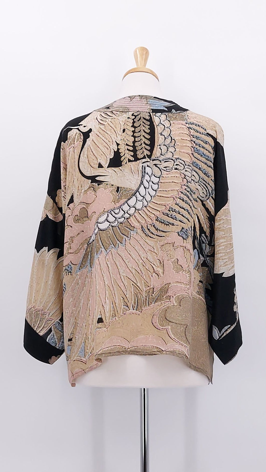 One Hundred Stars crepe kimono Crane Black print.